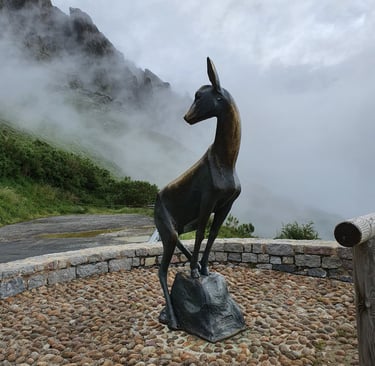 Mon 25th. We are moving out into the Picos today, on cracking roads that look like a plate of spaghetti in places. Via the famous Balcon de la Cardosa with it's Roe Buck statue to our hotel for 2 nights, the Parador de Fuente De. 5.5 hours/200 miles. Lovely spacious rooms to base ourselves for 2 nights.